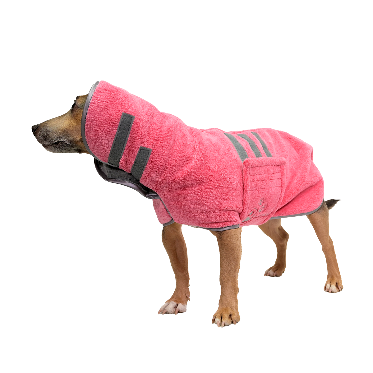 Aceste halate extraordinare sunt realizate dintr-un strat dublu de Coral Fleece de cea mai înaltă calitate, ceea ce le face extrem de absorbante și cu uscare rapidă. Două benzi reglabile cu scai (Velcro) asigură o fixare perfectă și sigură, permițând în același timp câinelui tău să se miște liber și confortabil. Perfect după baie sau plimbare, protejând interiorul mașinii, podelele sau cușca câinelui de murdărie și apă.