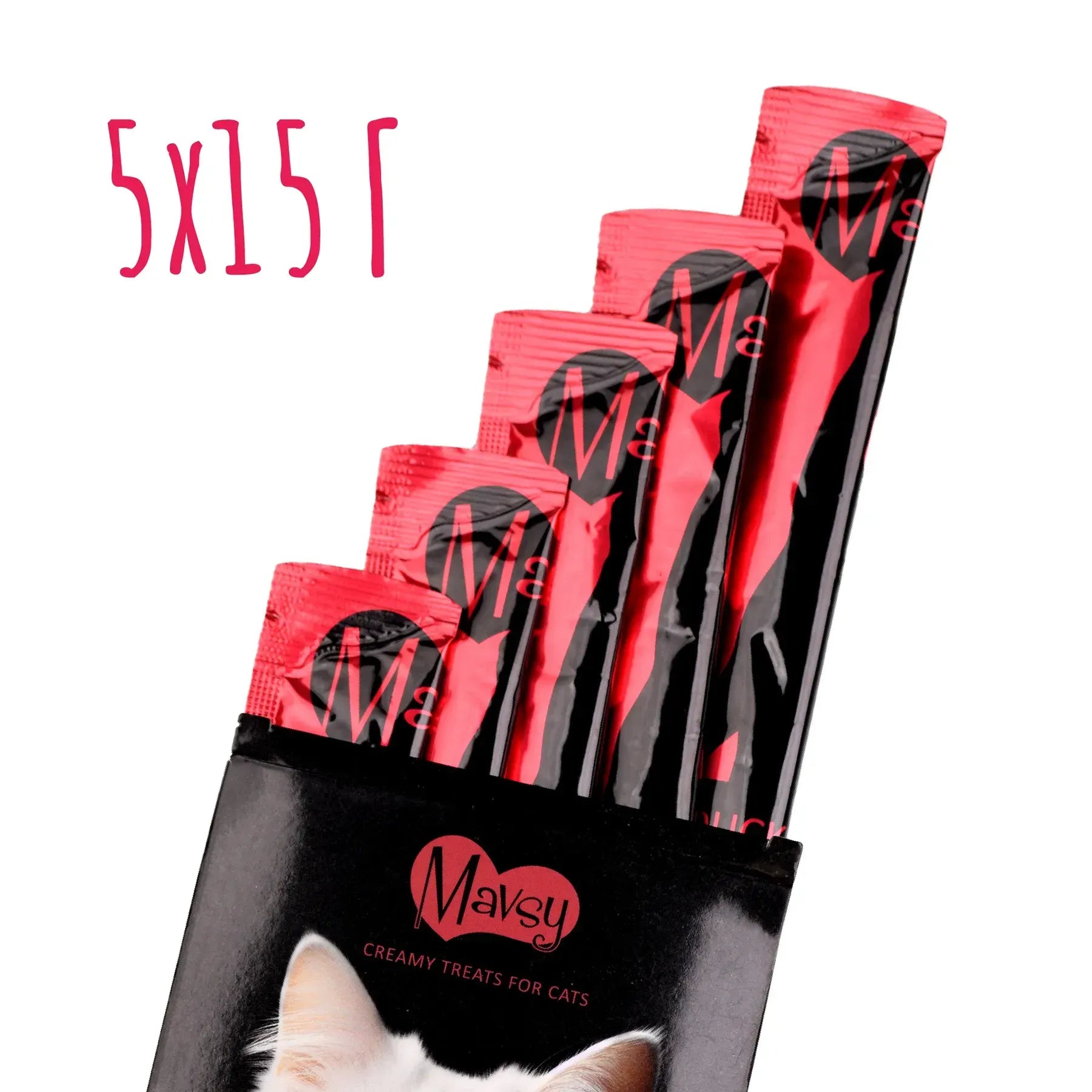 MAVSY Recompense pentru Pisici, Pateu din Piept de Rata, Sufleu de Merisor, (5x15g) 75 g