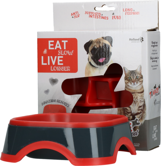 Castron hranire lenta Eat Slow Live Longer Tumble - Rosu 20,5cm