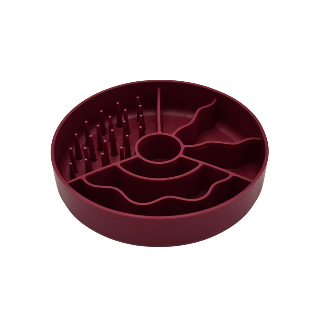 Designul său unic ajută la reducerea consumului rapid de hrană, care poate duce la probleme digestive, balonare sau riscuri de sufocare. Datorită crestelor și proeminențelor special concepute în partea de jos a bolului, câinele sau pisica trebuie să depună mai mult efort în timpul mesei, ceea ce favorizează o digestie mai bună și o stare generală de bine.
