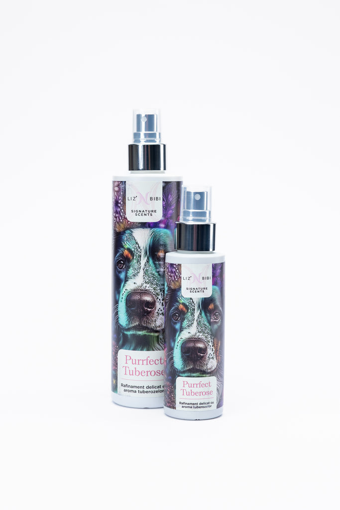 Oferă câinelui tău un parfum sofisticat și delicat cu Purrfect Tuberose – un spray cu aroma inconfundabilă a tuberozelor, creat pentru a transforma momentele de îngrijire în adevărate ritualuri de răsfăț.